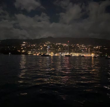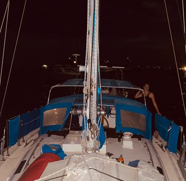 We sat together at the bow, looking up at the starry sky, feeling the warm breeze and the salty scent of the Pacific. The island lights shimmered across the water, and a deep sense of peace washed over us. What did I feel in that moment? Calm. Safety. Pure contentment.