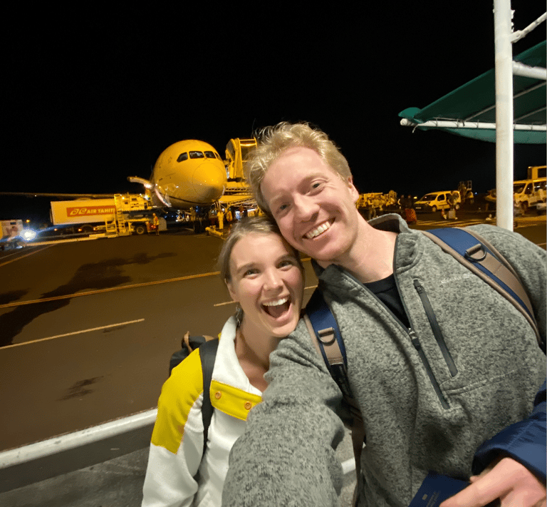 The flight itself was calm, and for the first time ever, Alex and I actually flew together. Somehow, it had never worked out before. When we landed in Tahiti, that familiar wall of warm, humid air greeted us, carrying the unmistakable scent of tropics, sea, and adventure. It was already dark. Luckily, our seats were toward the front of the plane, so Alex got through immigration a bit faster. Our bags arrived soon after, all three of them safe and sound. A good start!