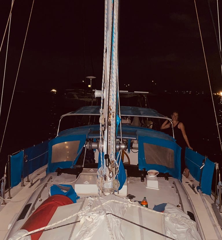 And off they went, a small light disappearing into the darkness, which had saved our evening. We stood on deck, watching them go, then turned to our boat. There she was, our beloved Tauha. Our floating world, feeling more and more like home every day. She floated quietly in the dark, spotless, dry, and working perfectly.