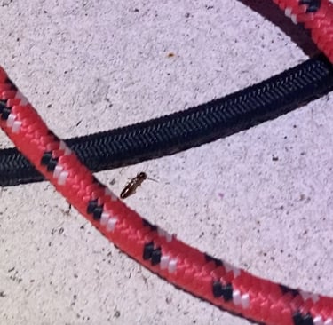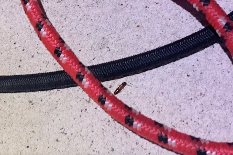 Als die Sonne unterging, wollte Alex noch kurz ins Wasser springen. Ich hatte keine Lust mehr, saß nur still im Cockpit, starrte ins Abendlicht und dachte nach. Nach ein paar Minuten kam Alex zurück, in der Hand ein Insekt. „Niccy, was ist das?“, fragte er beunruhigt. Ich sah es mir an. „Entweder eine Ameise oder... eine Termite?“, meinte ich. Es sah eindeutig nach Letzterem aus.