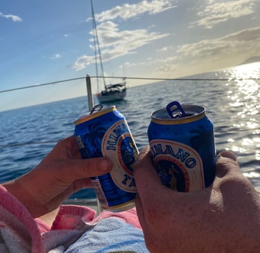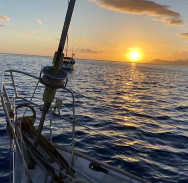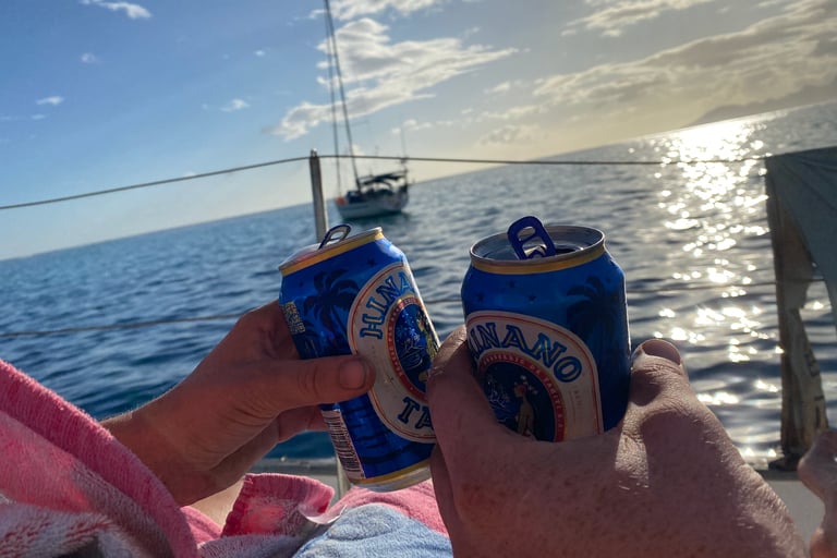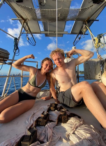 Währenddessen ging es Alex plötzlich nicht mehr gut. Er sagte, er fühle sich krank, wollte aber trotzdem helfen. Ich bat ihn, sich hinzulegen, doch er kam einfach nicht zur Ruhe. Immer wieder sagte er, er wolle helfen, wisse aber nicht wie. Als ich nach einer Weile ins Cockpit ging, sah ich, dass er ganz blass war. In dem Moment wurde mir klar, dass es ernst war, vielleicht eine kleine Panikattacke. Ich fragte ihn, ob er eine Umarmung wollte. Er nickte, warnte mich aber lachend, ich solle mich nicht anstecken. Doch er hatte kein Fieber und keine anderen Symptome. Nach zwei Umarmungen legte er sich hin, wir lagerten seine Beine hoch und schalteten die Musik aus. Nach einer halben Stunde ging es ihm deutlich besser. Manchmal ist es einfach der Kopf, der eine Pause braucht. Wir waren erleichtert.