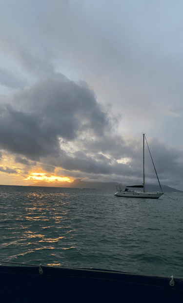 Back in Tahiti, it is the rainy season. The forecast has promised rain every single day for weeks, but let’s see how accurate that actually is. When we land, the humidity hits us like a warm, wet blanket. The ground is soaked, but for the moment, the sky behaves. We are cautiously relieved.