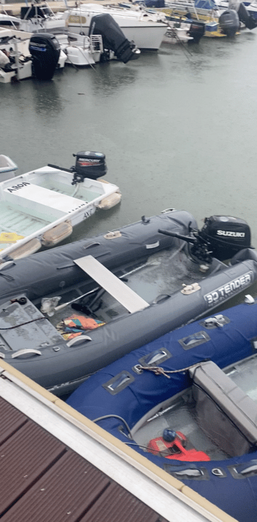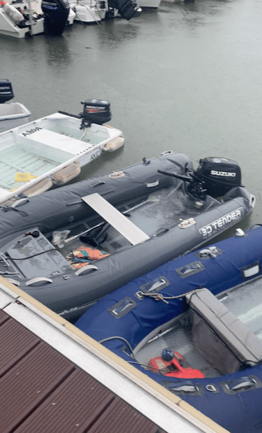 In the morning, the rain eases a little. When we step out of the car and walk around the marina, the aftermath is obvious. Dinghies left out overnight are completely full of water. Some barely float above the surface. We message the sailor group chat, asking if anyone might be able to give us a ride out. And sailors being sailors, our neighbor offers to come get us, driving through the rain without hesitation. He tells us that this kind of storm happens once in a while, but that we were especially unlucky to arrive that night. Oh well.