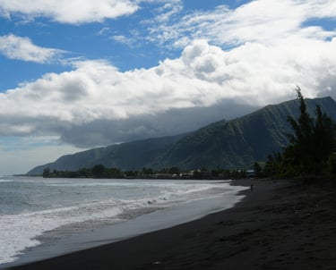 Next, we made a quick detour to a black sand beach. The light was soft, the ocean moody, and the waves were full of surfers slicing through the spray. We sit there for a while, just taking it all in. Then... a moment of panic. As we walked back to the car, I stuck my hand in my pocket - no keys. “Oh no.” I froze. Alex started scanning the beach, which of course was black sand, a perfect place to lose a black car key. Brilliant. But just as my brain spiraled into worst-case scenarios, I walked through the car and saw the keys still in the ignition. Phew.