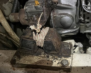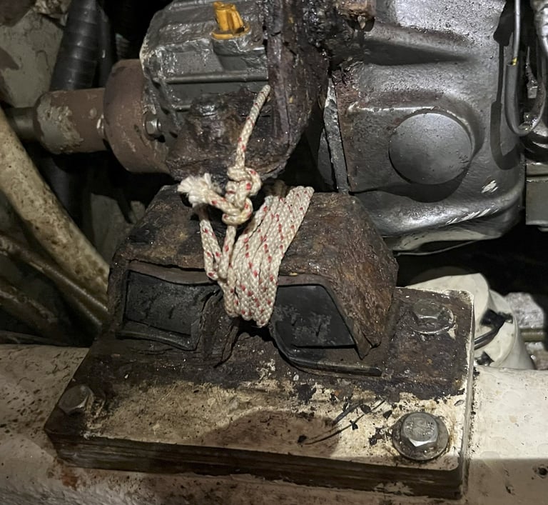 The next day, we gave the engine a closer inspection to make sure everything was okay. That’s when I noticed something… off. The engine had shifted. All of the mounts had worked loose during all the movement. If it had fully dislodged, the engine could’ve dropped into the bilge. Not ideal. Catastrophic you could say.