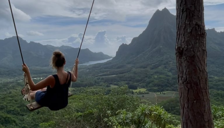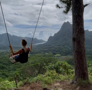 When my parents came to visit, we set sail for Moorea, a nearby island that feels like it belongs in a storybook. We spent several nights anchored there, exploring lush jungle trails, climbing into the mountains, and walking past fields of pineapples. The landscape was breathtaking. Everything smelled green and alive.